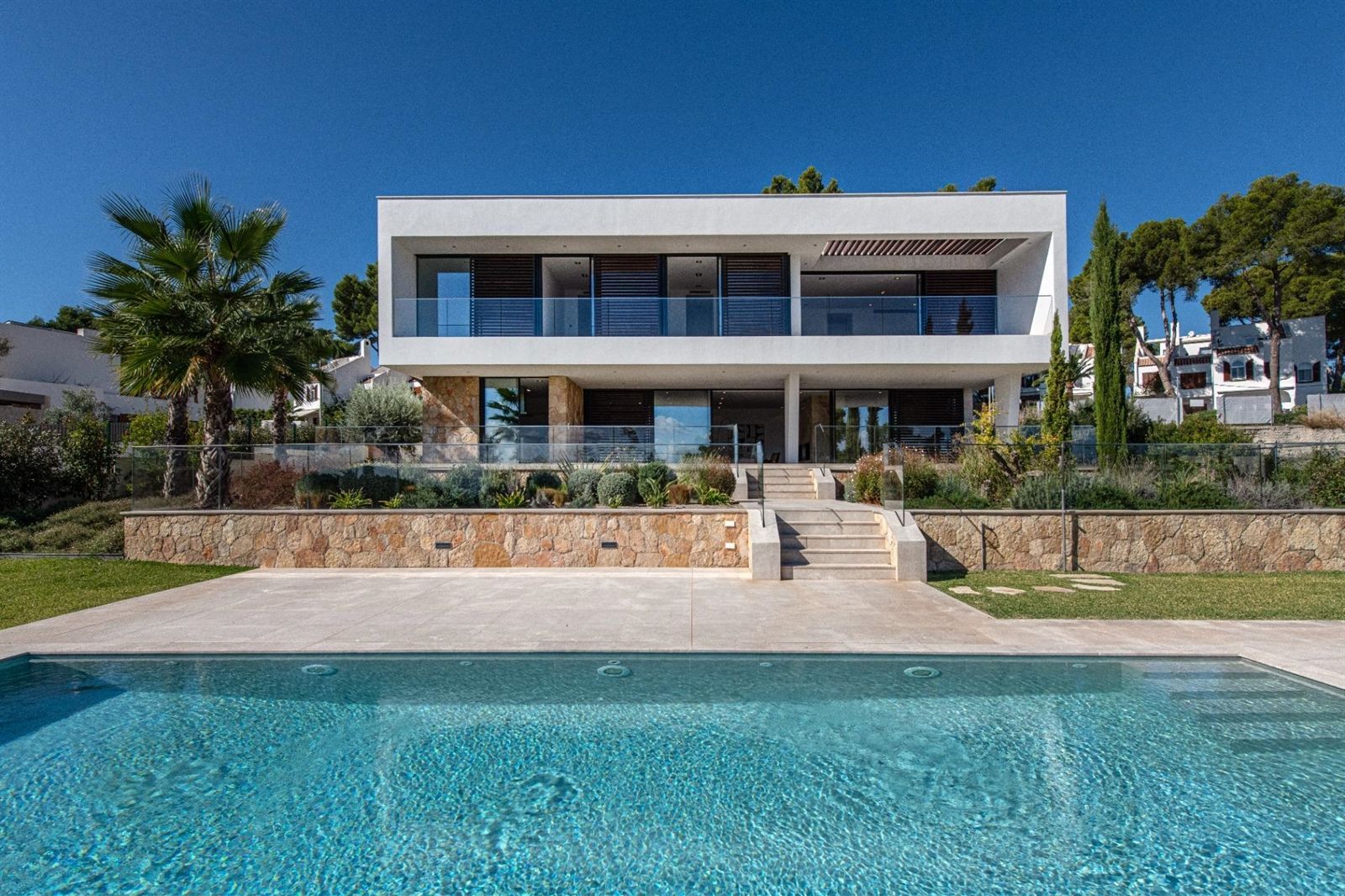 Mit 506 m2, verteilt auf 3 Etagen, beeindruckt diese exklusive Neubau-Villa in Sa Font Seca, Palmanyola, mit spektakulärem Meerblick, 4 Schlafzimmern, 4 Bädern, Garage für bis zu 16 Autos, Swimmingpool, überdachten und offenen Terrassen, Außenküche sowie einer Bauausführung nach höchsten Luxusstandards. Die moderne Villa, gelegen auf einem ca. 1.300 m2 Grundstück, wird Ende 2026 schlüsselfertig übergeben. Sie verfügt über hochwertige Materialien wie doppelt verglaste Fenster, Zentralklimatisierung mittels Aerothermie, Fußbodenheizung, Einbauschränke, eine großzügige Master-Suite mit begehbarem Kleiderschrank, Natursteinfassade sowie eine Küche mit hochwertigsten Elektrogeräten. Der Blick auf die Bucht von Palma und das Tramuntana-Gebirge ist spektakulär.