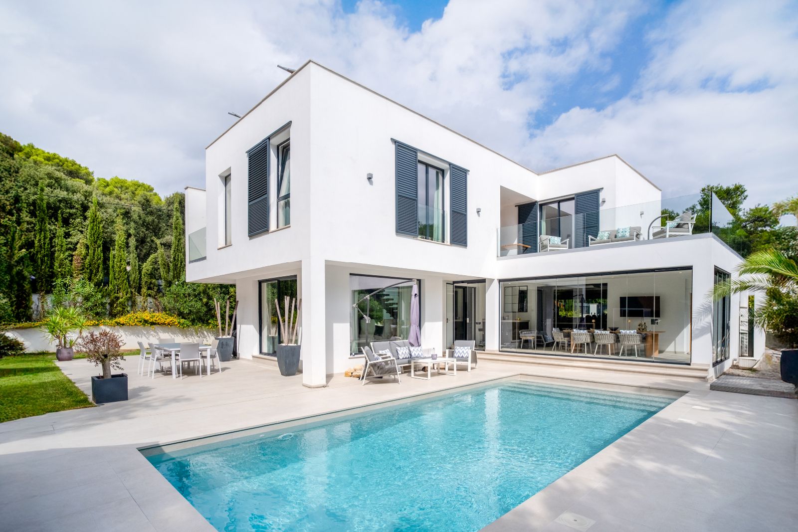 73 m2 Swimmingpool, umgeben von Bäumen, Spa mit Sauna, Dampfbad und Fitnessraum, Küche mit Gaggenau-Elektrogeräten sowie eine 2. Serviceküche, faltbare Paneelwände, Hausautomation und Aufzug: Diese Luxusvilla in Son Vida, Palma de Mallorca, mit 1.054 m2 bebauter Fläche beeindruckt durch ihre Größe, die Privatsphäre und die Liebe zum Detail. Die Villa erstreckt sich über 3 Ebenen und verfügt über ein großes Wohnzimmer mit Bioethanol-Kamin, Essbereich und Küche, beeindruckende Master-Suite mit Ankleideraum, Bad und Lounge, 3 weitere Schlafzimmer, Büro mit Außenzugang sowie eine Garage für bis zu 6 Autos. Zur Ausstattung gehören u.a. Aluminium-Doppelglas-Fenster Wärme- und Schalldämmung, Fußbodenheizung, Klimaanlage sowie ein Lufterfrischungssystem.