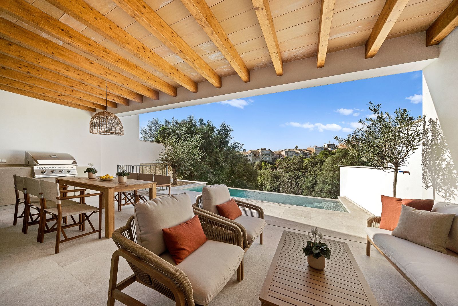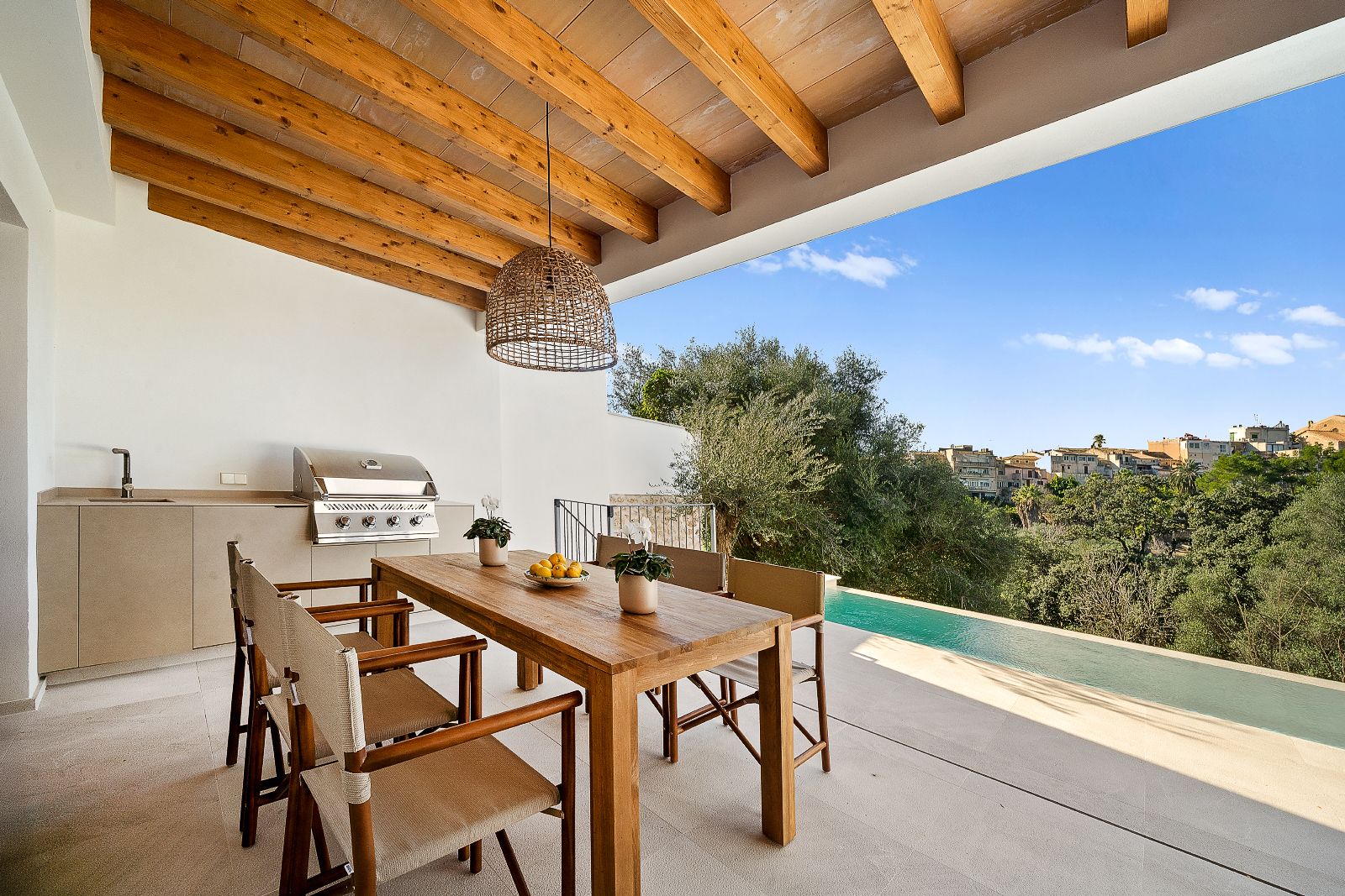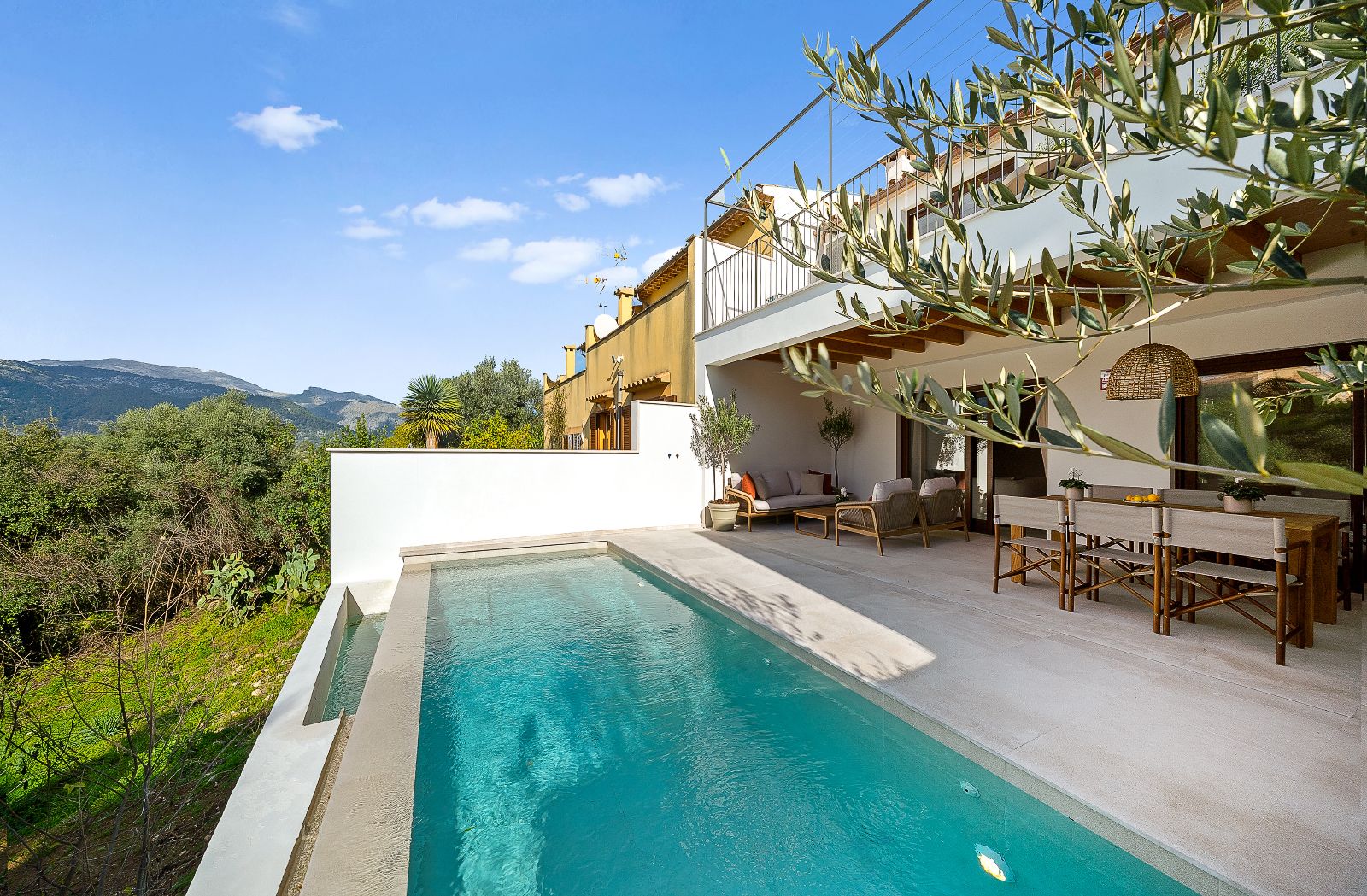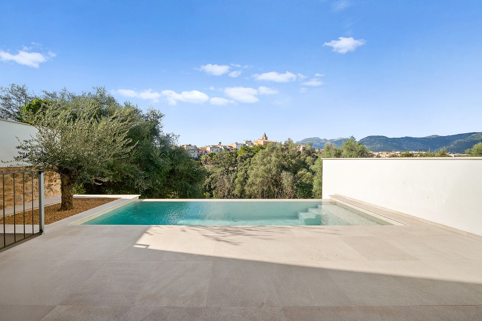 Kernsaniertes Luxus-Haus in Campanet mit Swimmingpool und wunderbarem Blick auf das Dorf Campanet und die Serra de Tramuntana. Das 199 m2 große Haus verfügt über 4 Schlafzimmer, 3 Badezimmer, Salzwasser-Swimmingpool, 1 Garagenplatz im Erdgeschoss, und zusätzlich über ca. 62 m2 Terrassen und einen 30 m2 Keller verfügen. Zu den hochwertigen Ausstattungsmerkmalen gehören Fußbodenheizung, zentrale Klimaanlage, Natursteinböden, Aluminiumfenster mit Doppelverglasung, Nordholz-Türen, Einbauschränke mit Innenauskleidung aus Holz und Beleuchtung, Designermöbel und eine Küche der Spitzenklasse, Kamin im Wohnzimmer und Waschküche. Die atemberaubende Aussicht ist das i-Tüpfelchenn.
