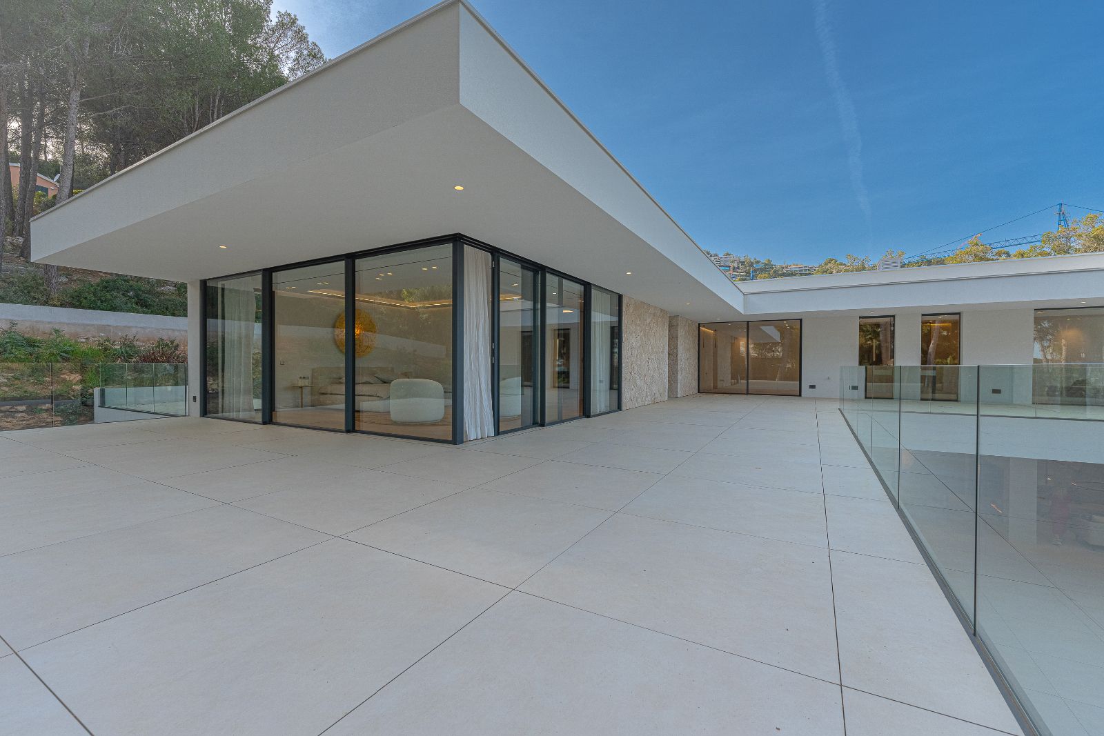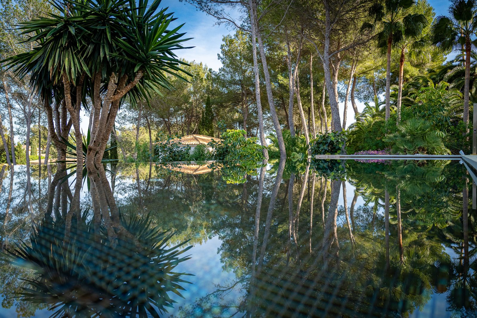 73 m2 Swimmingpool, umgeben von Bäumen, Spa mit Sauna, Dampfbad und Fitnessraum, Küche mit Gaggenau-Elektrogeräten sowie eine 2. Serviceküche, faltbare Paneelwände, Hausautomation und Aufzug: Diese Luxusvilla in Son Vida, Palma de Mallorca, mit 1.054 m2 bebauter Fläche beeindruckt durch ihre Größe, die Privatsphäre und die Liebe zum Detail. Die Villa erstreckt sich über 3 Ebenen und verfügt über ein großes Wohnzimmer mit Bioethanol-Kamin, Essbereich und Küche, beeindruckende Master-Suite mit Ankleideraum, Bad und Lounge, 3 weitere Schlafzimmer, Büro mit Außenzugang sowie eine Garage für bis zu 6 Autos. Zur Ausstattung gehören u.a. Aluminium-Doppelglas-Fenster Wärme- und Schalldämmung, Fußbodenheizung, Klimaanlage sowie ein Lufterfrischungssystem.