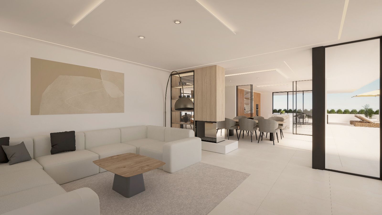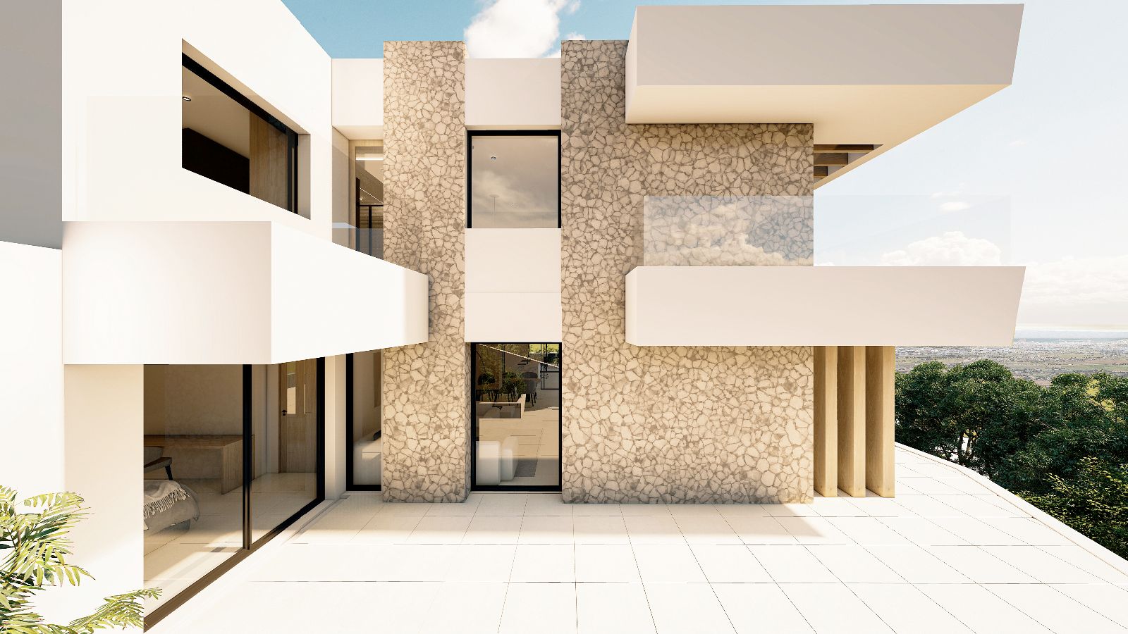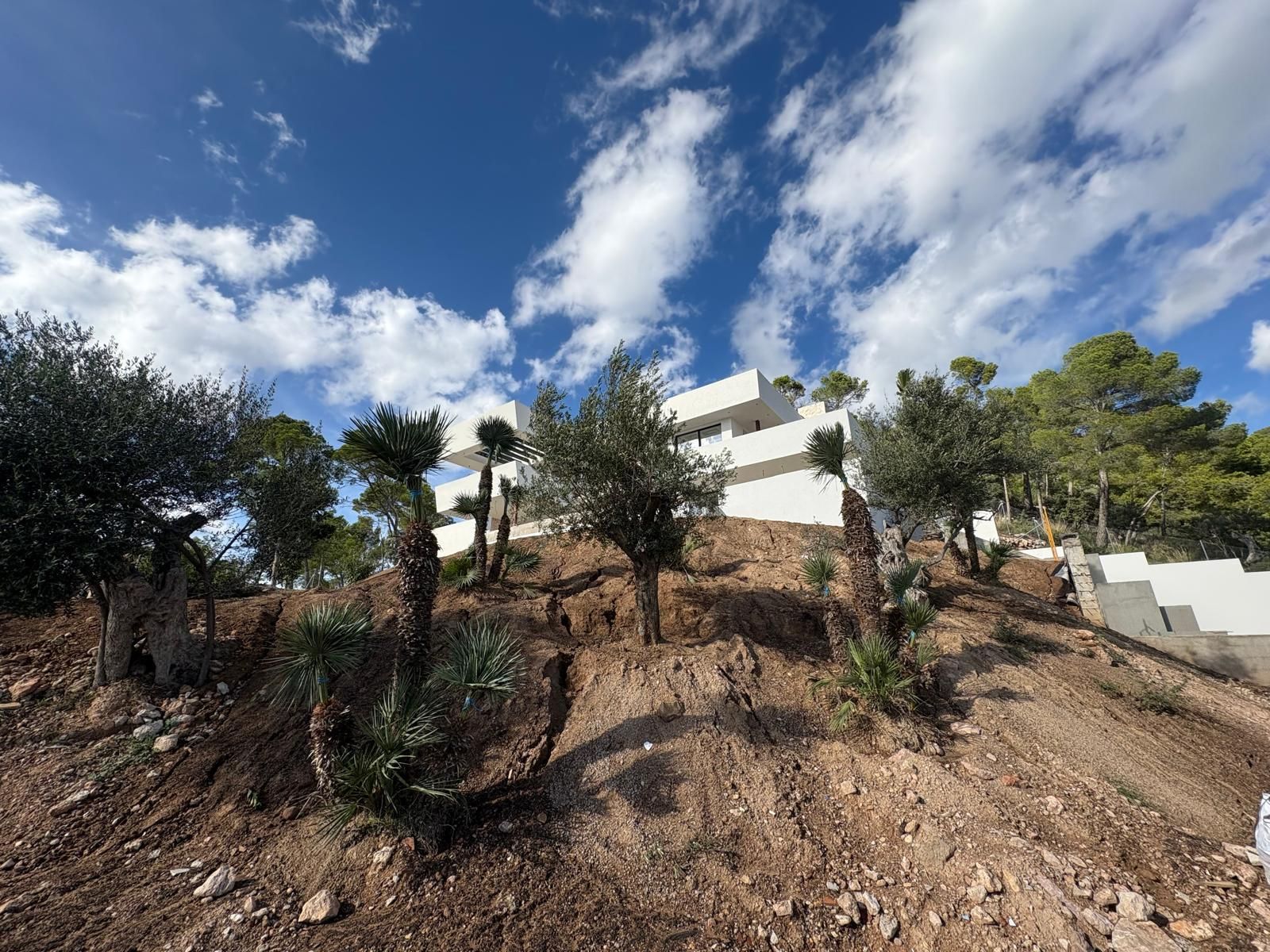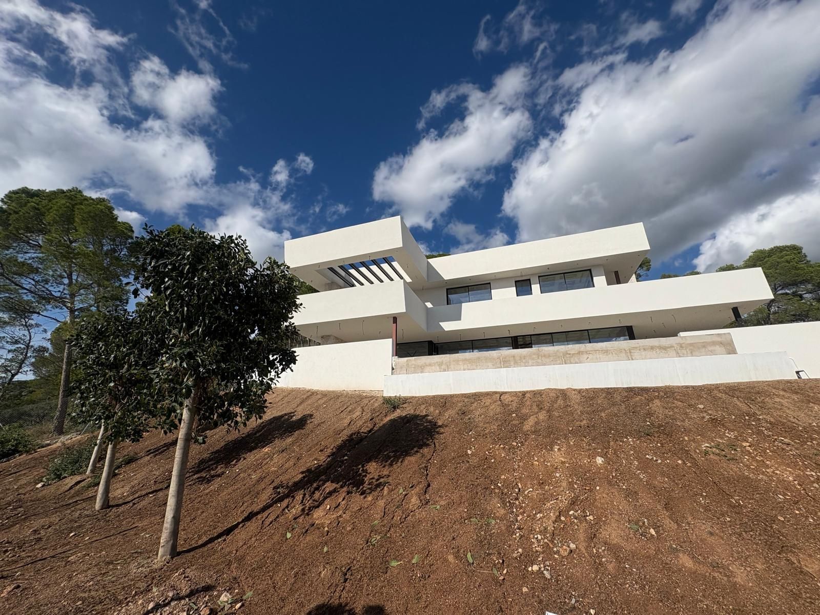 Mit 506 m2, verteilt auf 3 Etagen, beeindruckt diese exklusive Neubau-Villa in Sa Font Seca, Palmanyola, mit spektakulärem Meerblick, 4 Schlafzimmern, 4 Bädern, Garage für bis zu 16 Autos, Swimmingpool, überdachten und offenen Terrassen, Außenküche sowie einer Bauausführung nach höchsten Luxusstandards. Die moderne Villa, gelegen auf einem ca. 1.300 m2 Grundstück, wird Ende 2026 schlüsselfertig übergeben. Sie verfügt über hochwertige Materialien wie doppelt verglaste Fenster, Zentralklimatisierung mittels Aerothermie, Fußbodenheizung, Einbauschränke, eine großzügige Master-Suite mit begehbarem Kleiderschrank, Natursteinfassade sowie eine Küche mit hochwertigsten Elektrogeräten. Der Blick auf die Bucht von Palma und das Tramuntana-Gebirge ist spektakulär.