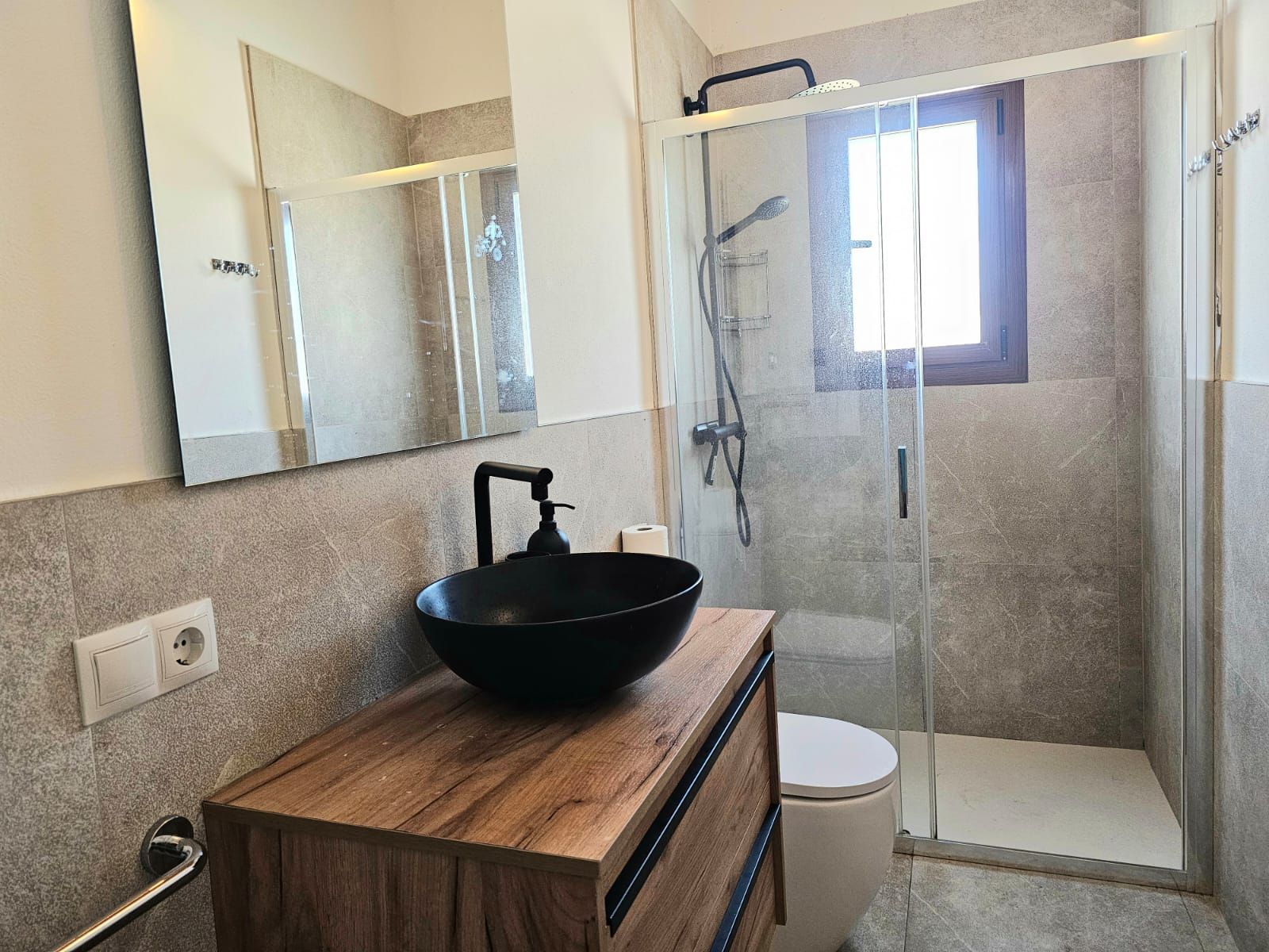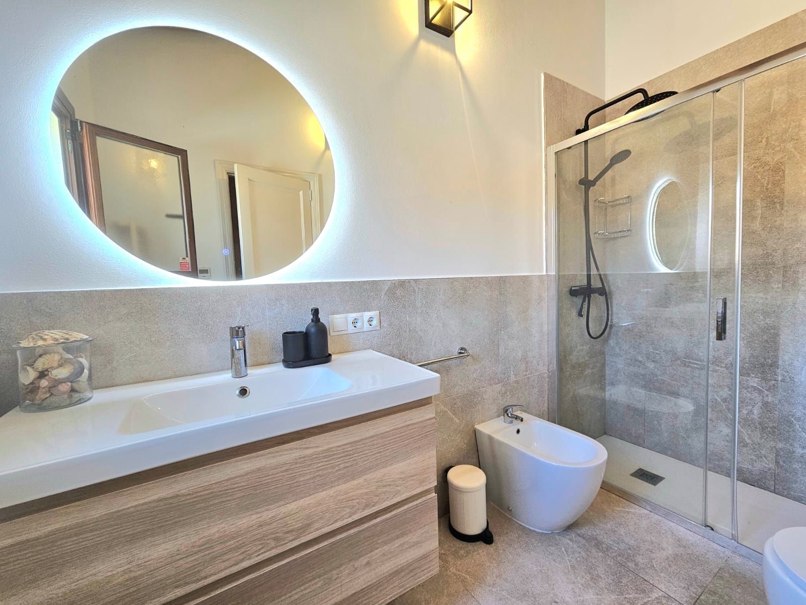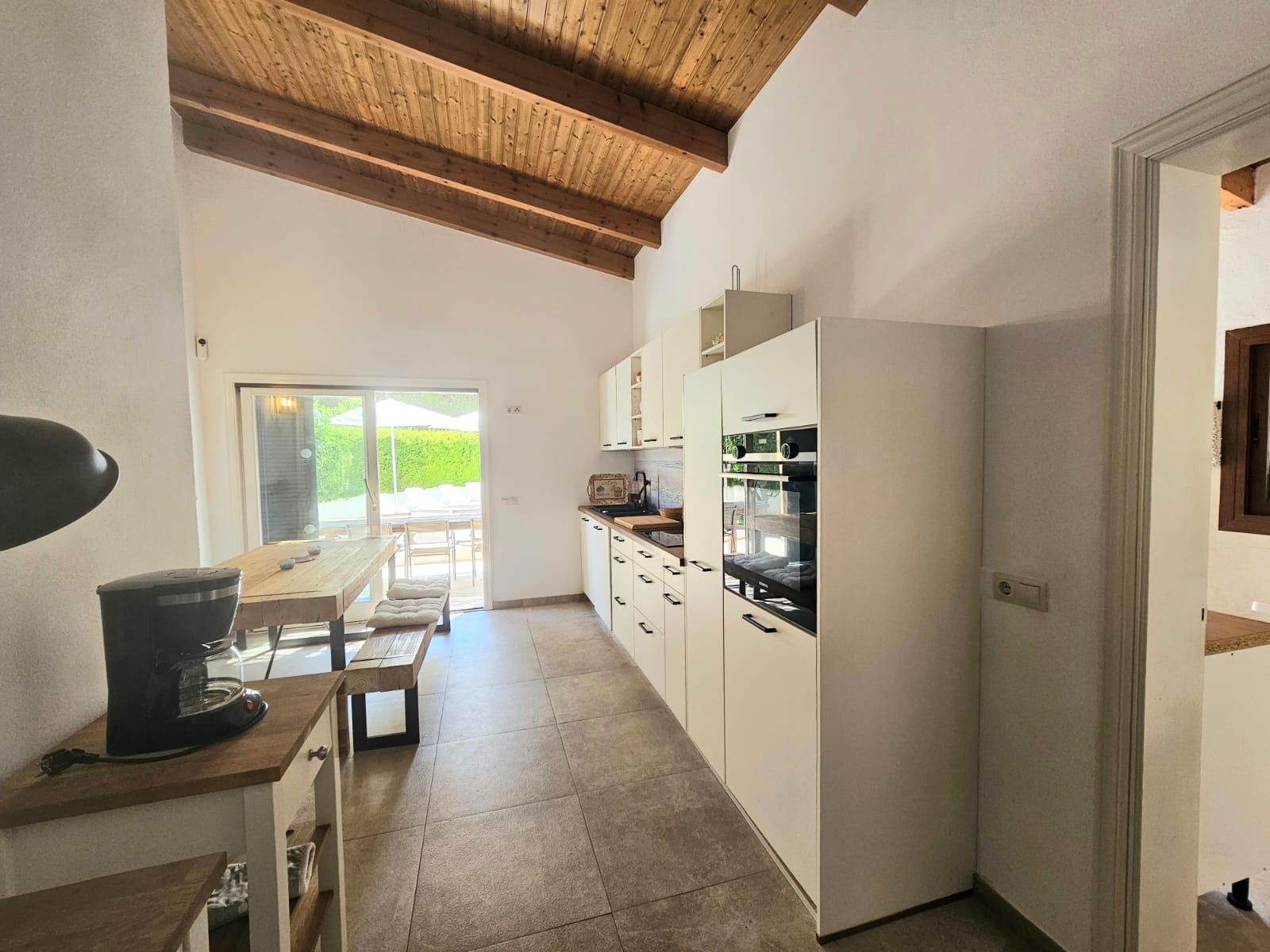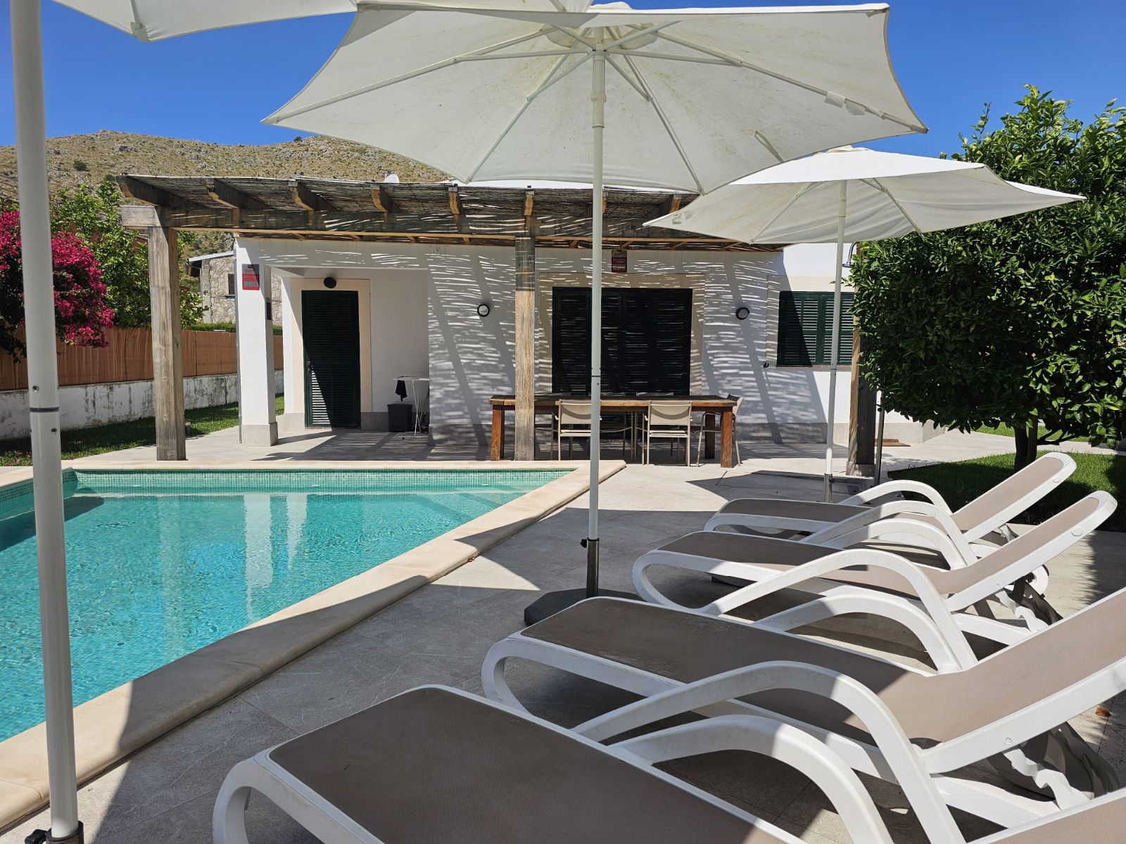 3 bedrooms, 2 bathrooms, an open-plan living and dining area, kitchen with large laundry and storage room, and a pool with terraces and barbecue: This renovated 116 m2 villa in Puerto Alcudia is entirely on the ground floor and offers plenty of space for the whole family. The villa is equipped with Climalit double-glazed windows, air conditioning, underfloor heating in the bathrooms, pellet stove, fitted wardrobes, driveway parking and alarm system and has a holiday rental licence (ETV). The beautiful view of the Puig de Sant Martí is omnipresent in the garden and it is also not far to the beach.