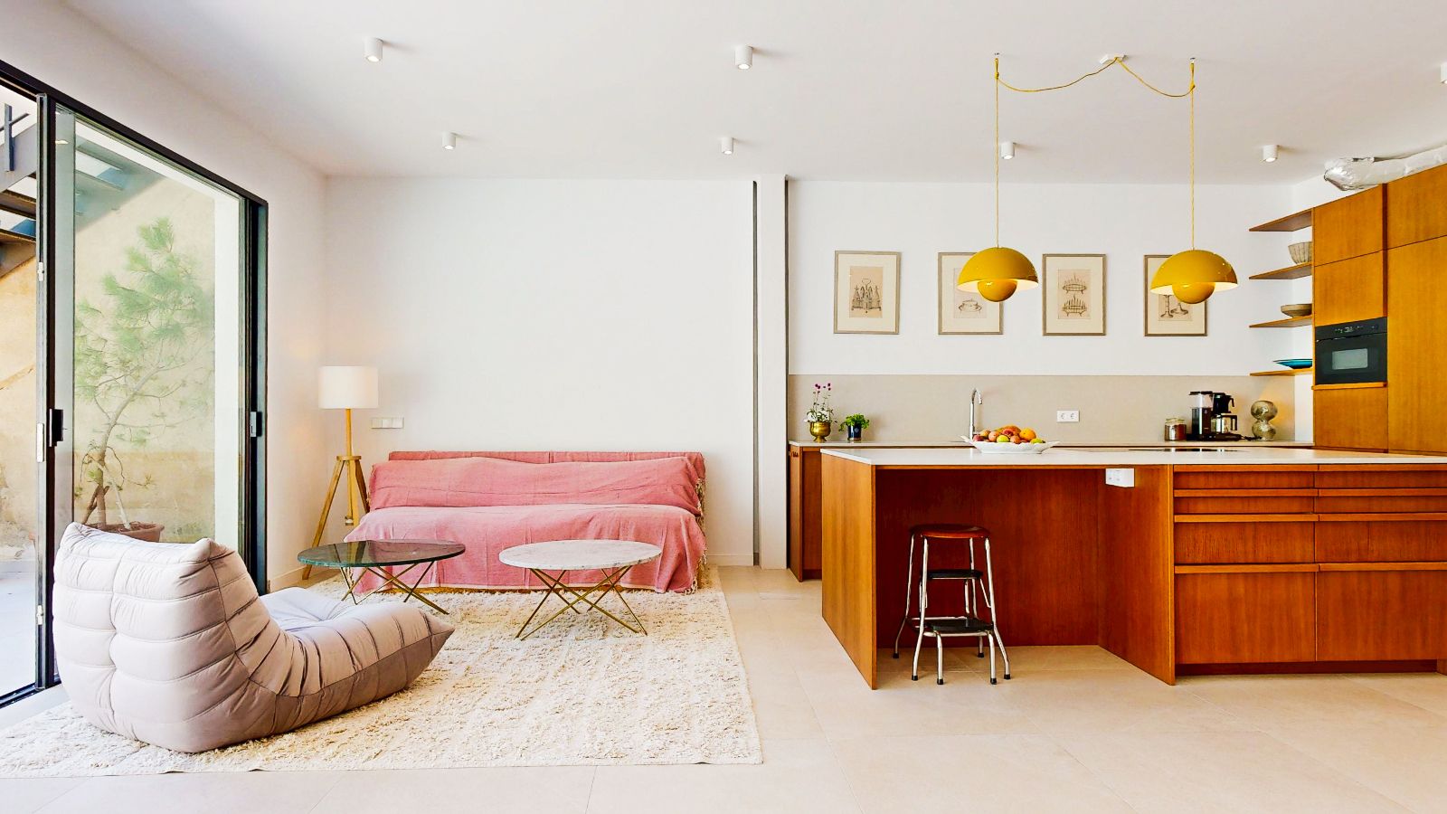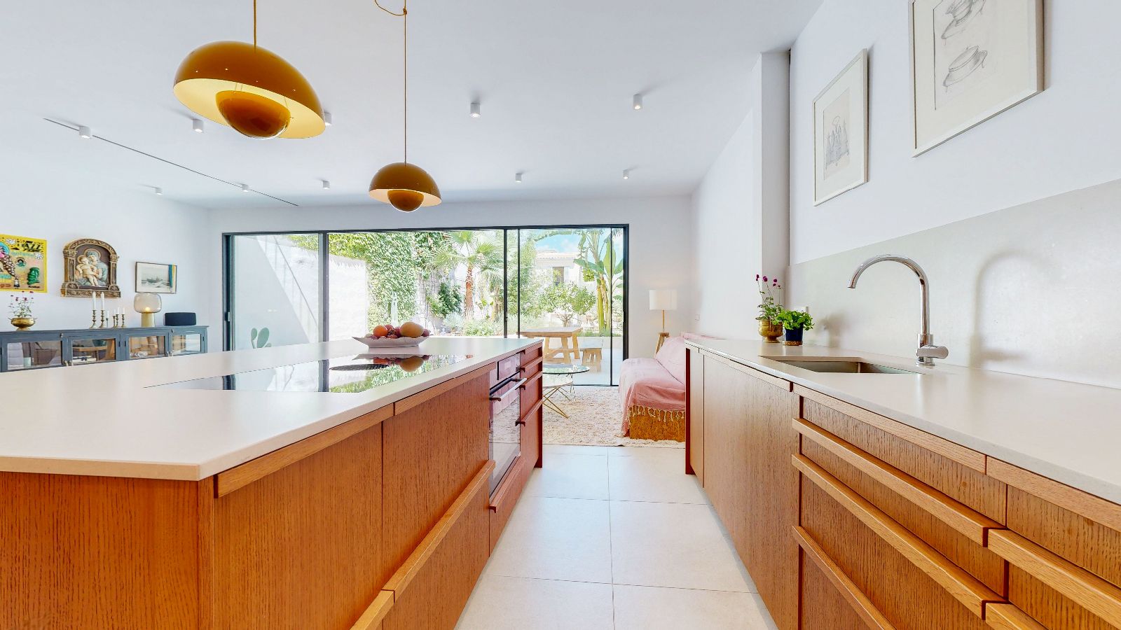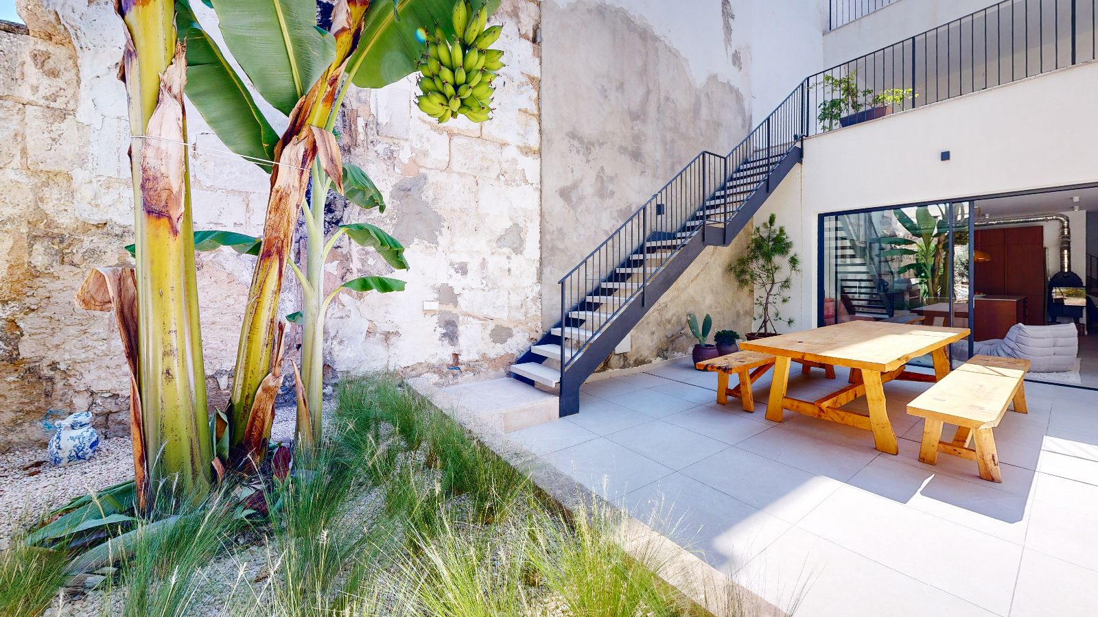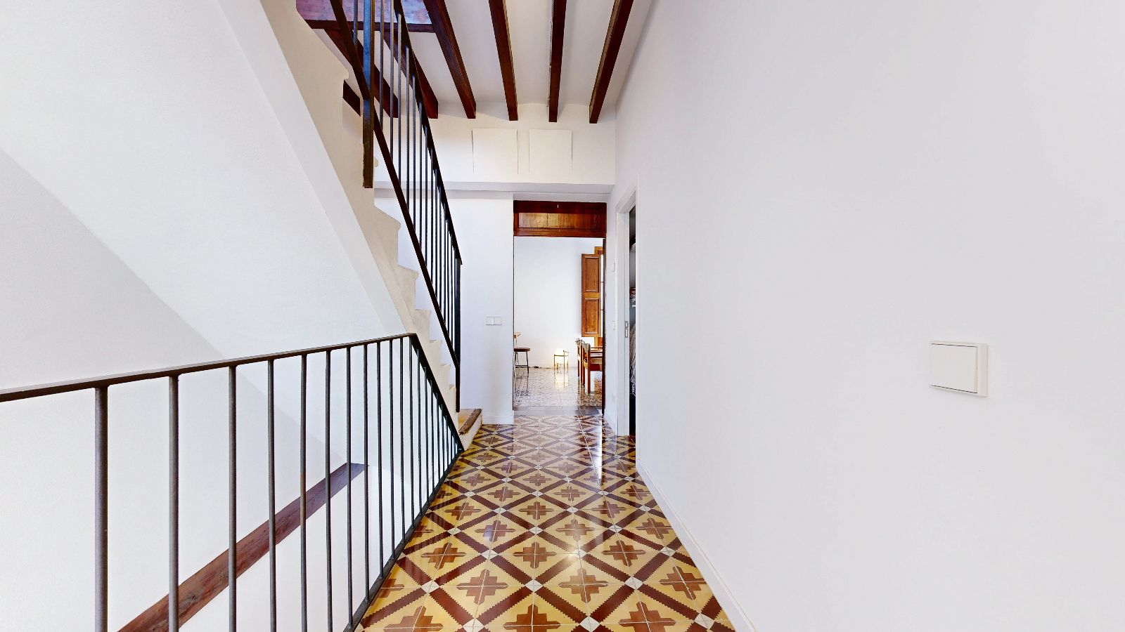 Located in Sa Pobla, this impressive village house with 450 m2 of constructed area offers a perfect combination of spacious interiors, modern design and excellent feng shui. The entrance opens into a welcoming hall, with a room to the right currently used as a garage space, additional bedroom, or laundry area. For those who wish for a traditional garage with street access, a building permit is available to make this change. The open-plan living area welcomes you through beautiful arches, leading to a modern kitchen with an island and seating. The custom-designed kitchen, made by a local carpenter, integrates perfectly with the living and dining areas, creating an ideal atmosphere for socializing.