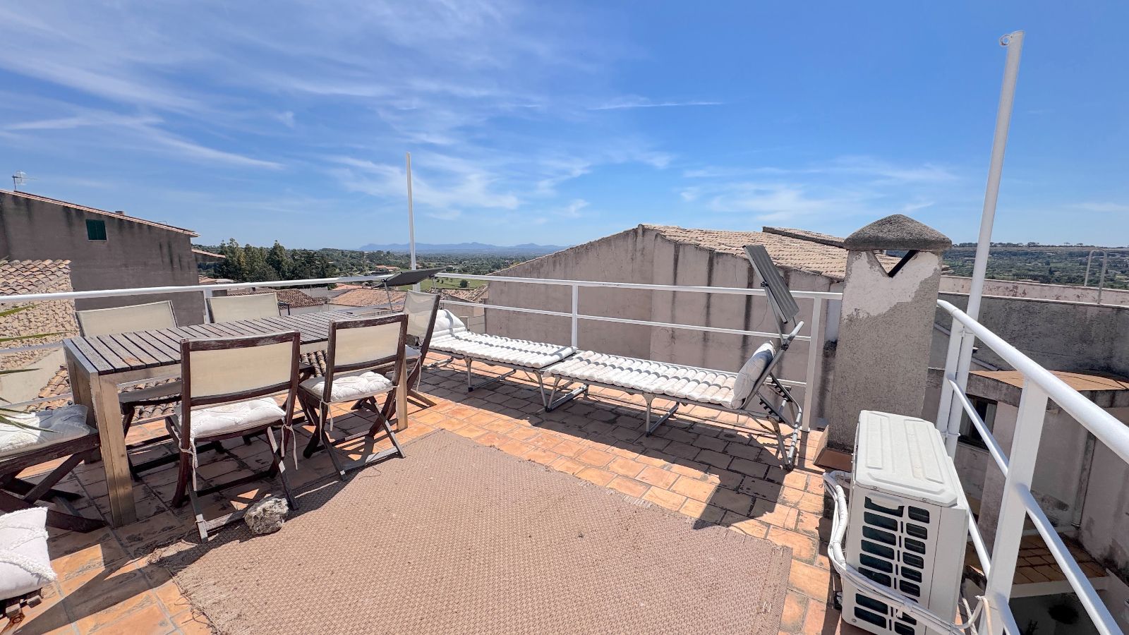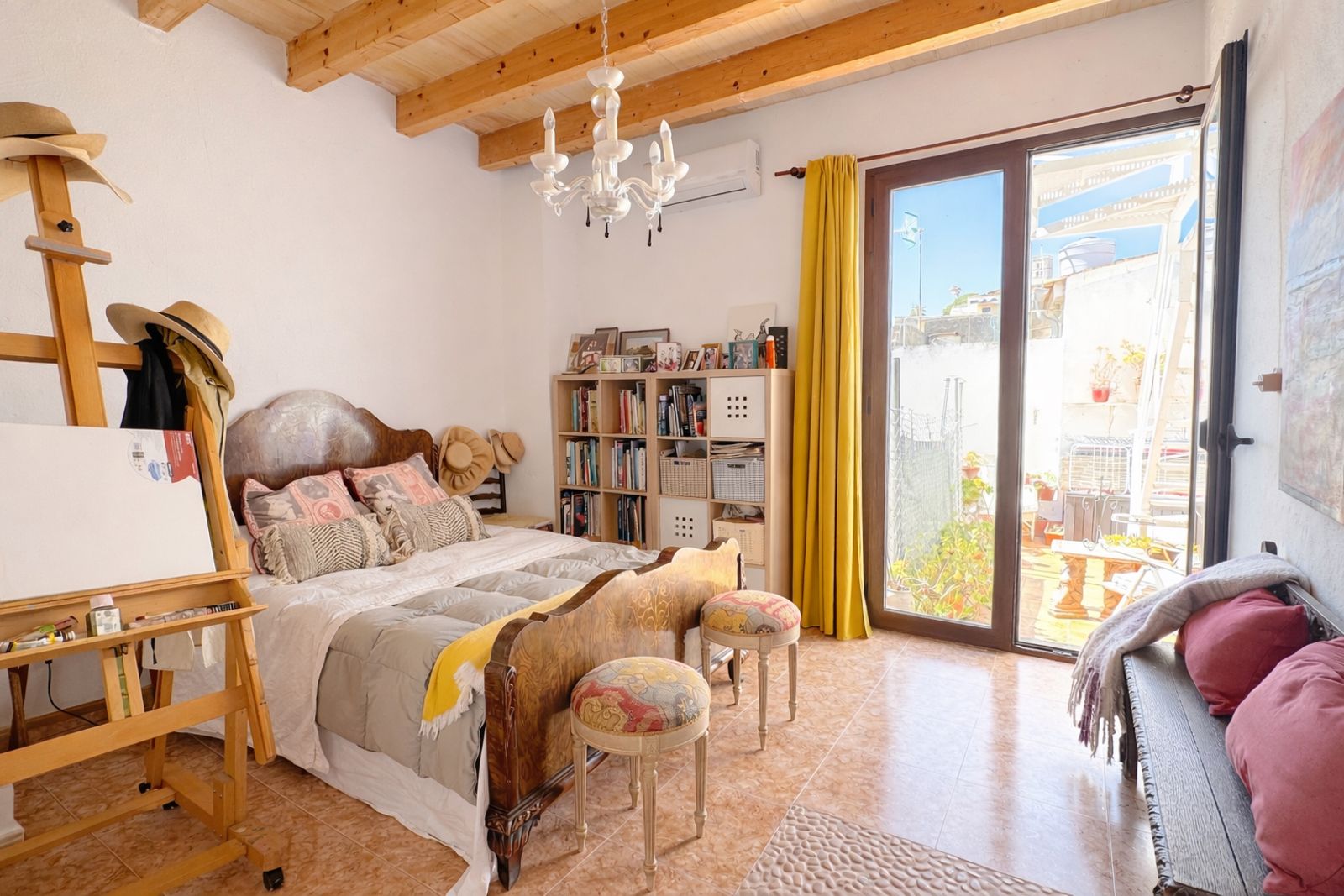 Acogedora casa de pueblo en Selva de 114 m2, distribuidos en 3 plantas más terraza en la azotea. Levantada en una parcela de 77 m2, esta casa consta de 2 habitaciones dobles y 1 sala adicional, también ideal como oficina, 2 baños - 1 en cada planta -, cocina reformada con techo acristalado y chimenea, salón con estufa de pellets, una bonita terraza en la azotea con vistas despejadas y lavadero. La casa está equipada con ventanas de PVC con doble acristalamiento, persianas de madera, suelos de baldosas de cerámica y aire acondicionado frío / calor, y tiene muchos detalles de su tradicional arquitectura - como vigas vistas, baldosas antiguas, paredes de piedras expuestas - en muy buen estado, aportándole un encanto muy especial.
