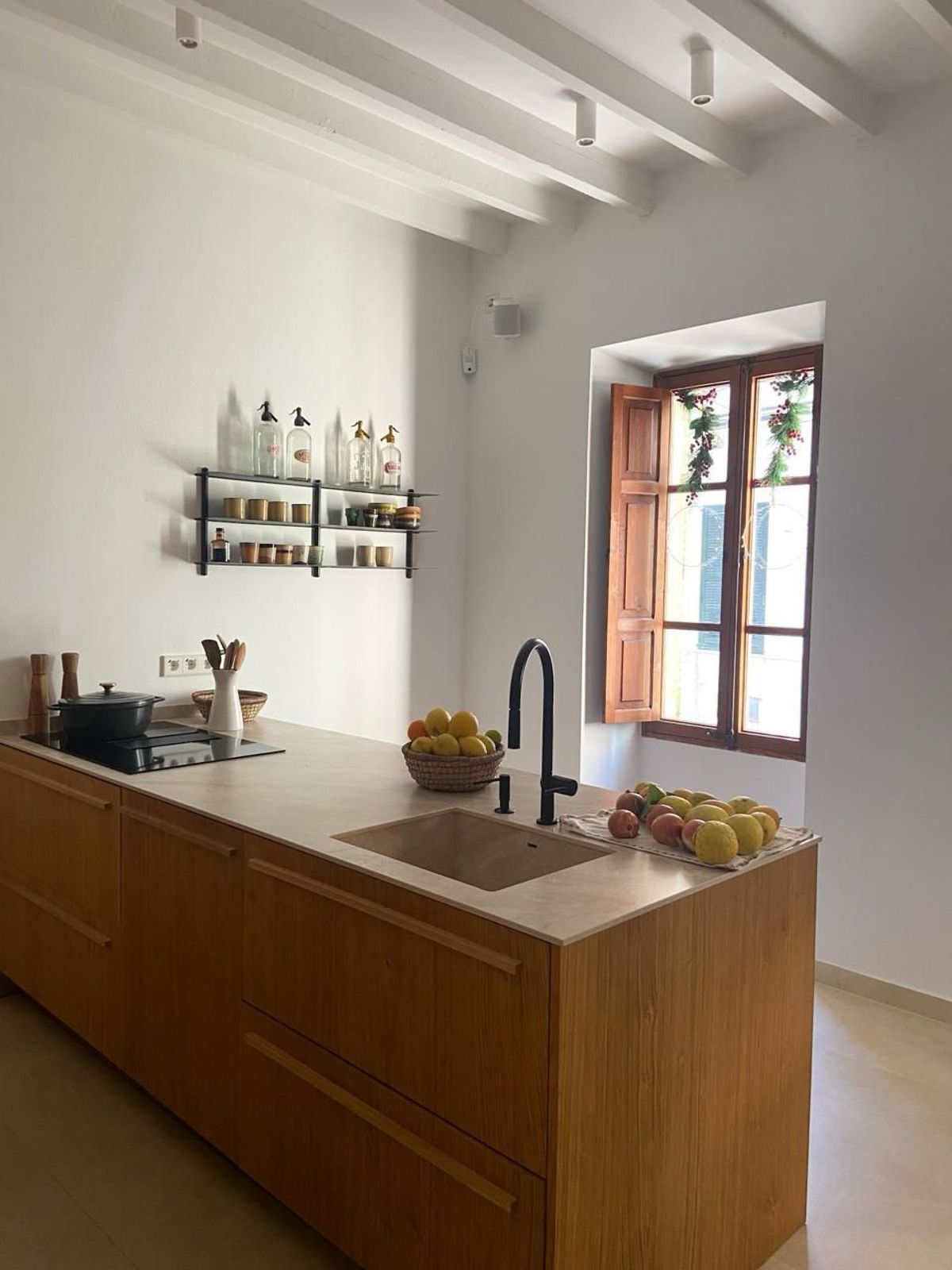 Preciosa casa de 176 m2 en el casco antiguo de Alcudia, con una parcela de 90 m2 y vivienda distribuida en 2 plantas más terraza en la azotea con despejadas vistas sobre el pueblo hasta las montañas de la Serra de Tramuntana. La casa fue totalmente reformada con materiales de alta calidad y está listo para entrar a vivir. La entrada lleva a la cocina con isla con comedor, y mediante una escalera pequeña al salón que tiene salida a un patio de aprox. 10 m2, 1 aseo y lavadero. En la 1a planta se encuentra la habitación master con vestidor y baño en-suite, más 2 otros dormitorios dobles y otro baño completo. Está equipado con ventanas de aluminio de doble acristalamiento, persianas de madera, suelos cerámicos, climatización centralizada, aljibe y armarios empotrados.